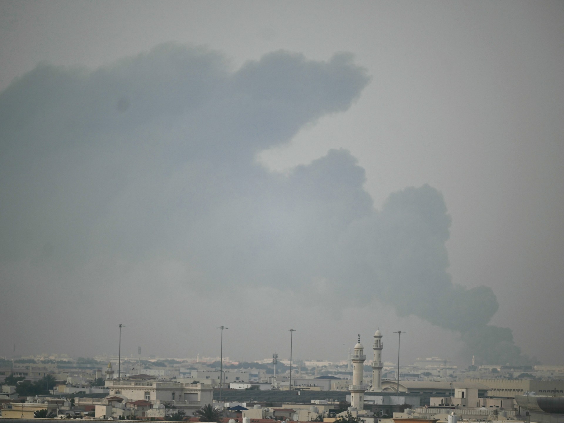 Witnesses in Doha reported hearing several loud bangs and seeing thick black smoke rising on the clear morning horizon in the south of the city.